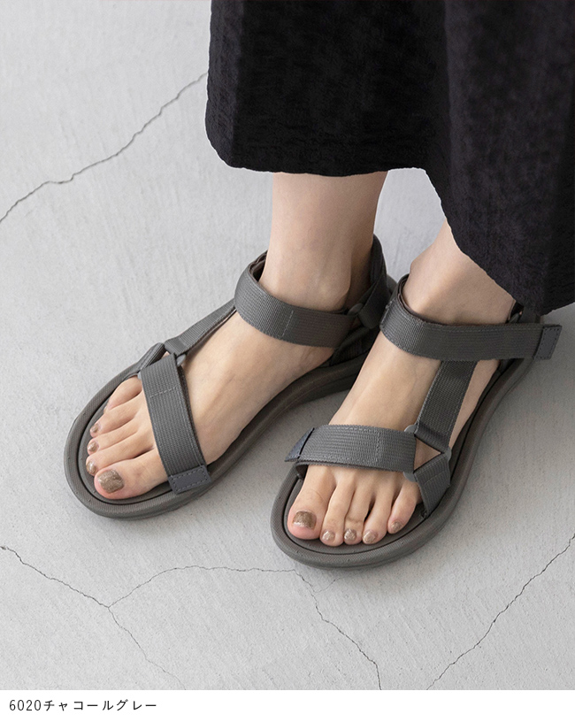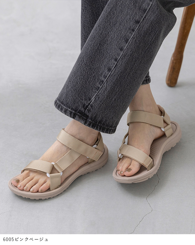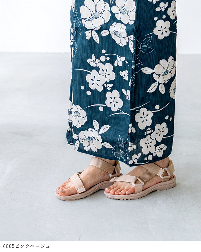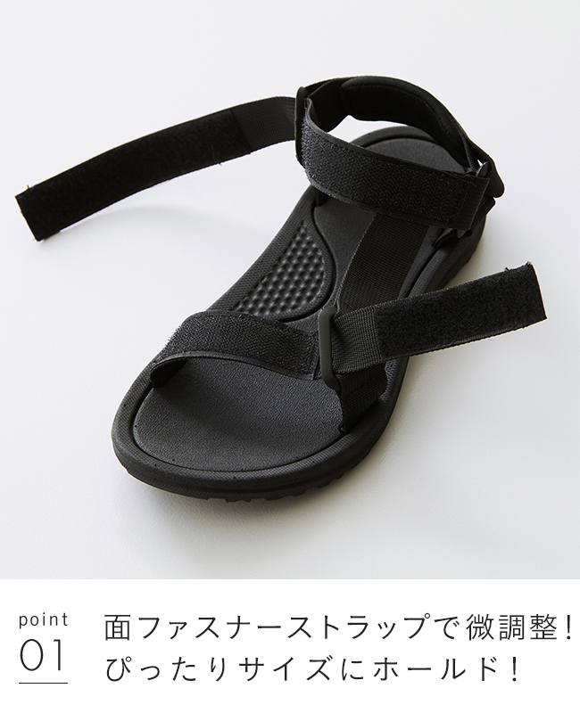 足幅部分と足首部分が面ファスナーで調整できるので、自分好みのぴったり快適な履き心地に。幅広さんにも対応。