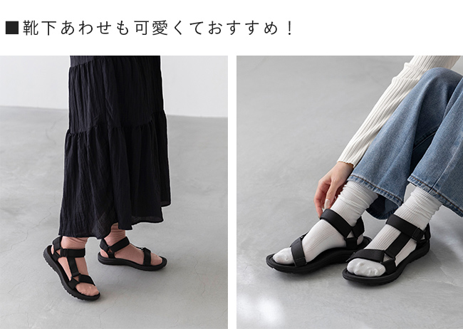 足元にスポーティさを取り入れられる定番の形のスポサン。靴下Xスポサンも可愛く、幅広い季節で活躍してくれます。