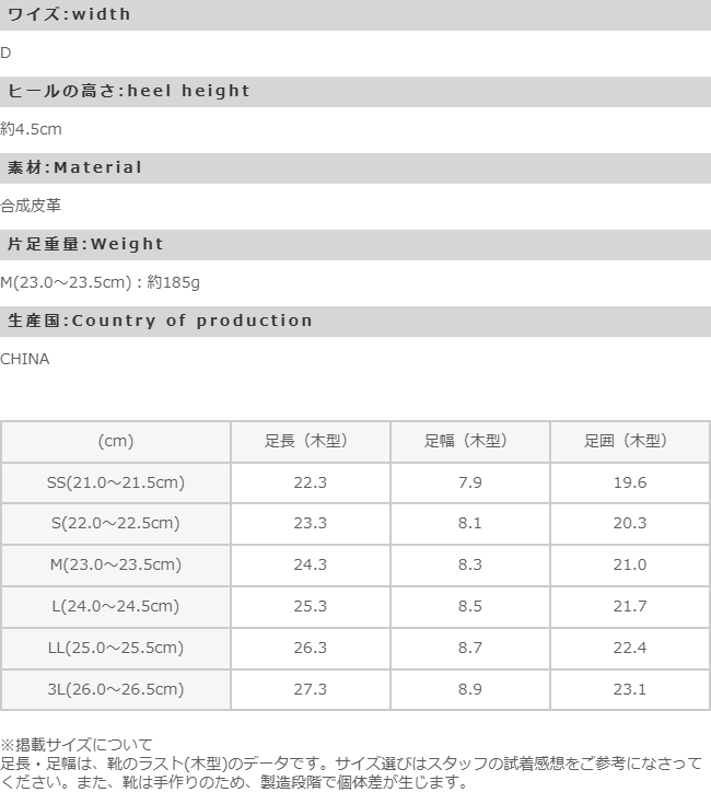 ※掲載サイズは、靴のラスト(木型)のデータです。