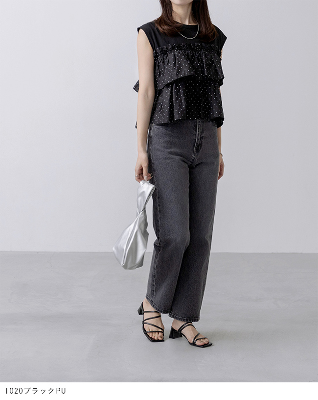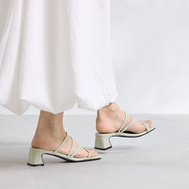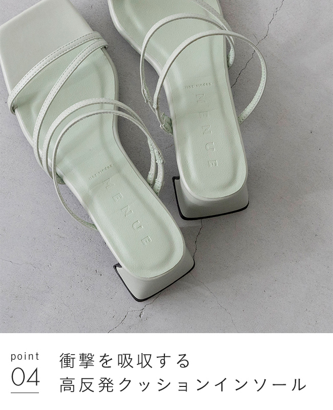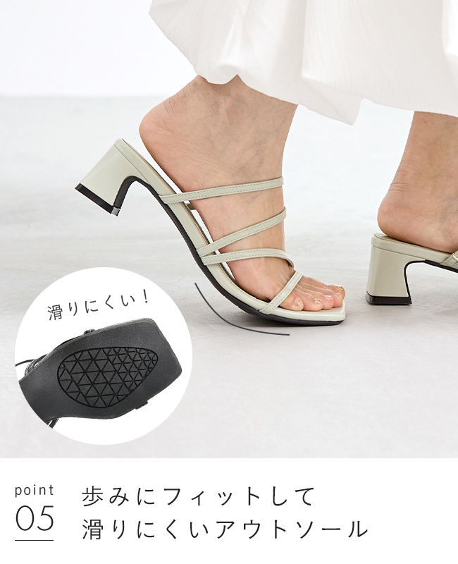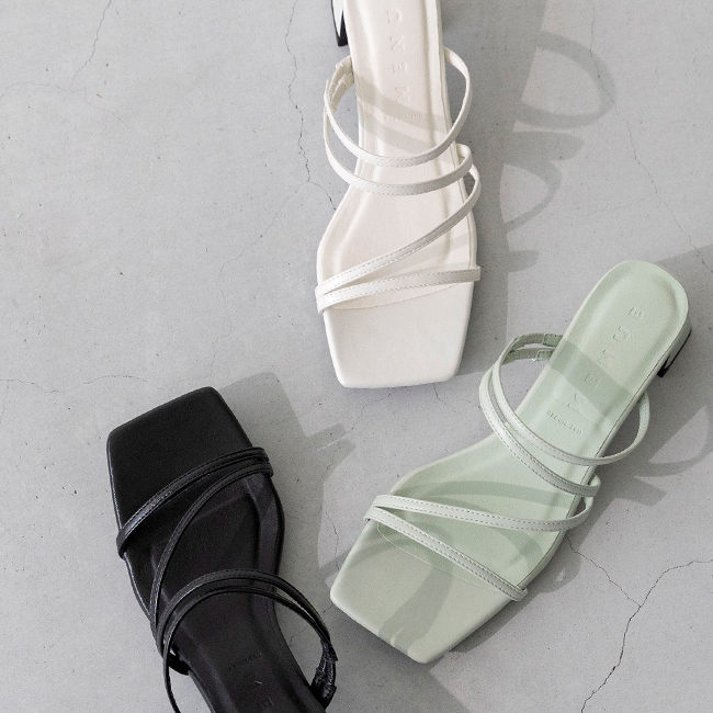 細身のストラップが連なったデザインは足元からすらっと華奢に。