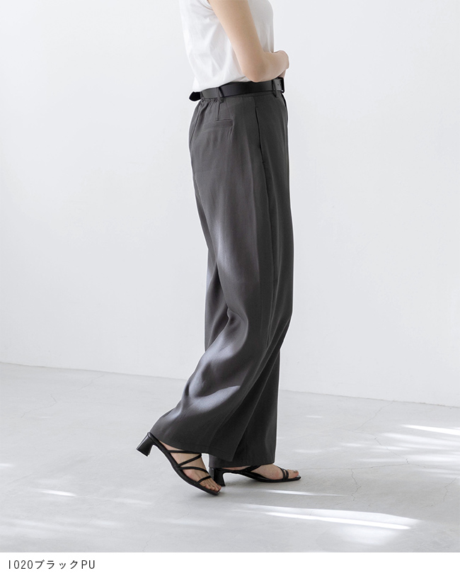 フェミニンな雰囲気を台形ヒールでスタイリッシュに引き締めるデザインはこの夏幅広く使えること間違いなし!