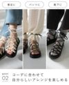 ソックスやパンツの上から見えるようにレースアップを巻きつければ、カジュアルながらも女性らしいこなれ感に。