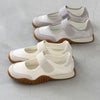 面ファスナーの貼り付け位置を自分のフィットするサイズ感に合わせておけば、ゴムストラップでいちいち外す手間なく、するっと脱ぎ履きできてとってもラクチン!
