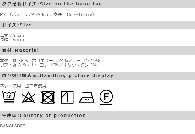 タグ記載サイズ: M-L(バスト:79~94cm、身長:154~162cm)