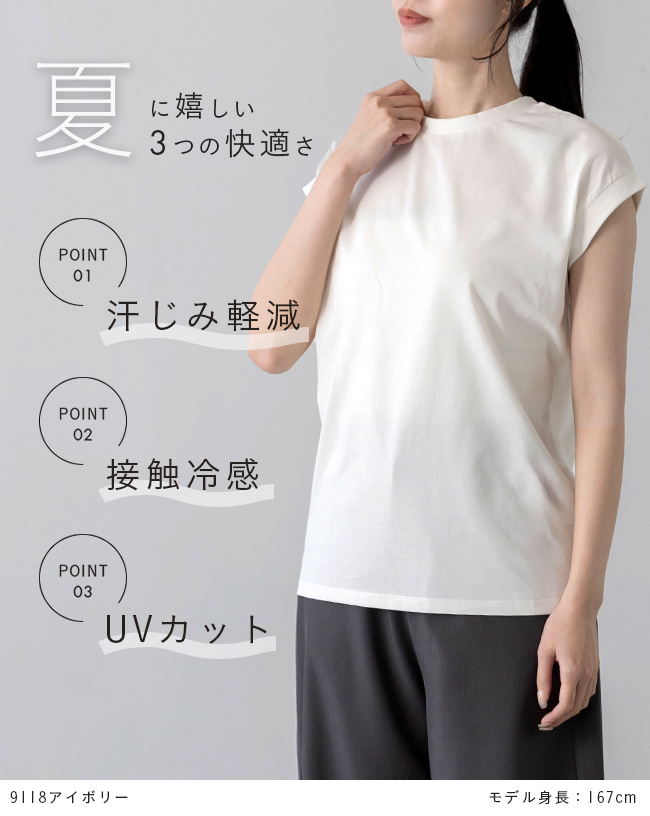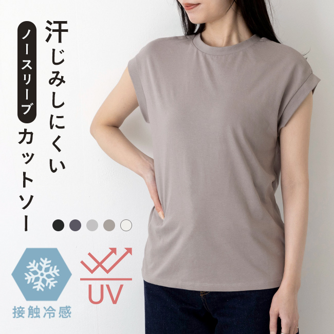 接触冷感 UVカット 汗じみ軽減ノースリーブカットソー