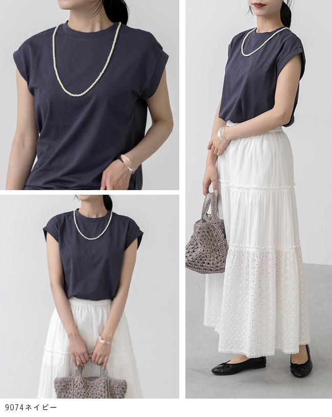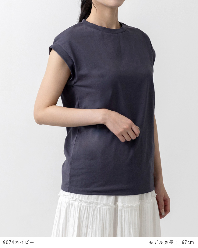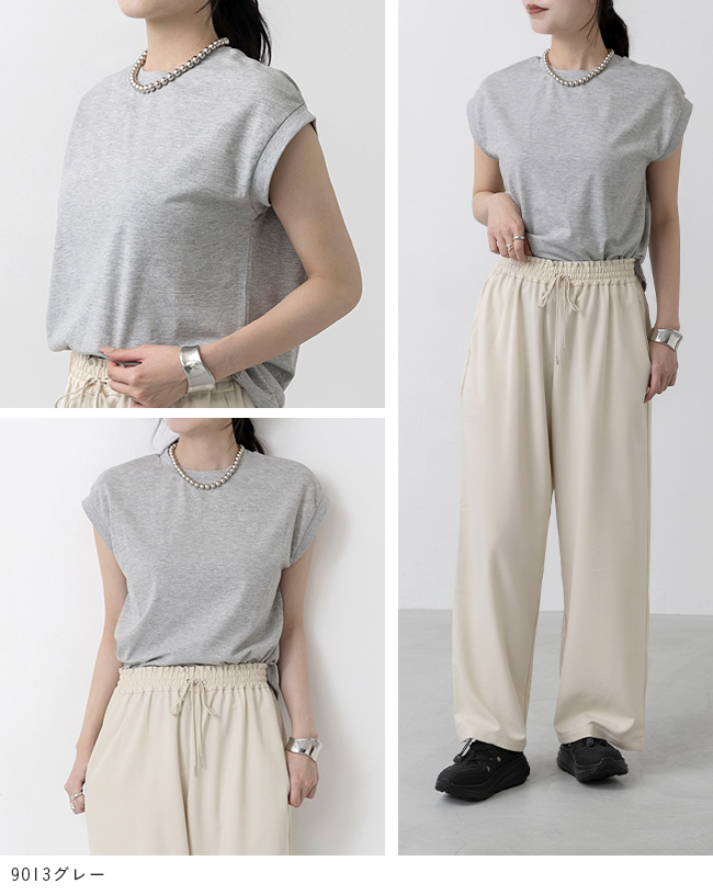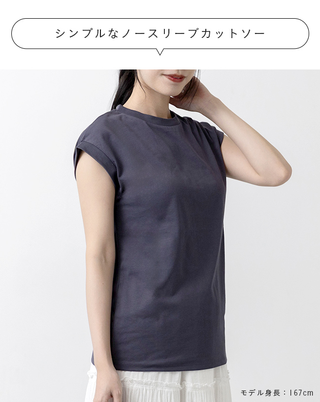 汗ばむ暑い季節の大敵の汗じみが目立ちにくい、デイリーに着まわせるノースリーブカットソー。