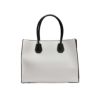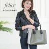 シンプルな形ながらトライカラーが新鮮な、当店オリジナルトートバッグfelice(フェリーチェ)。特殊な高級合成皮革を採用することで、本革に負けない上品な美しさと、コストパフォーマンスの良さとを両立。持ち方も手提げ、肩がけ、ショルダー肩がけ、ショルダー斜め掛けと便利な4wayを実現しました。フォーマルからカジュアルまで幅広いファッションと合わせられ、その圧倒的な存在感で、持つ人に凛とした美しさと幸せを与えてくれる、当店の自信作です。