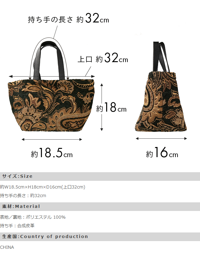 ★素材:表地/裏地:ポリエステル 100%、持ち手:合成皮革