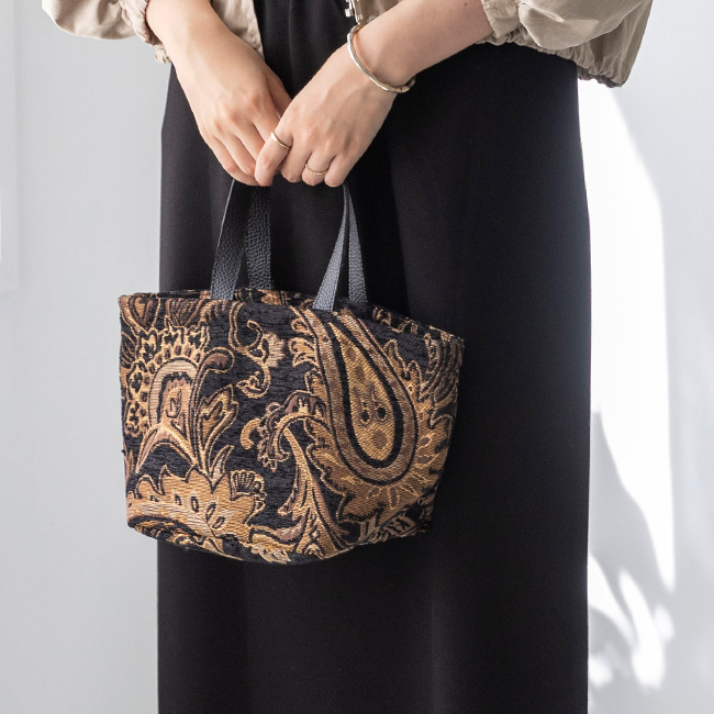 アンティーク調の落ち着いたペイズリー柄が、品よく秋冬感を演出して一気に高見え。