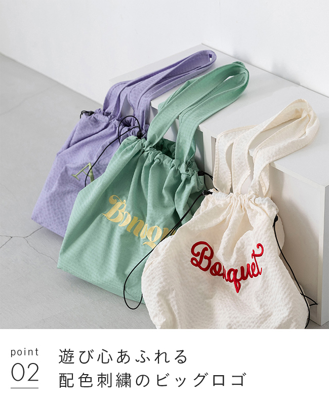 バッグのカラーごとに異なる、大胆なロゴ刺繍が目を引くデザイン!