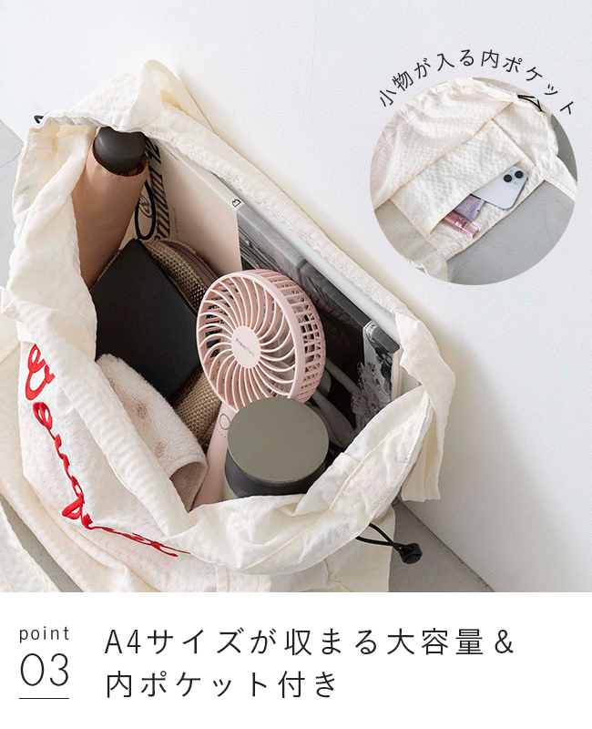 3.A4サイズが収まる大容量&内ポケット付き
