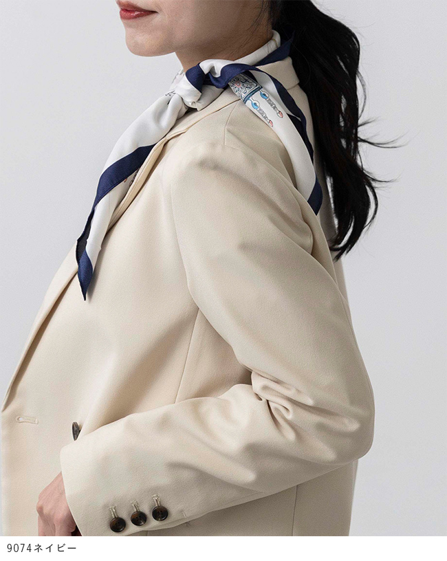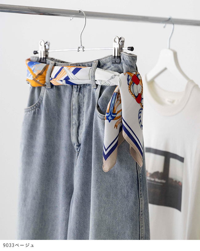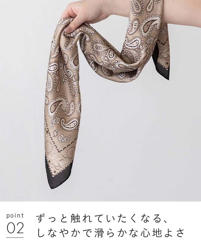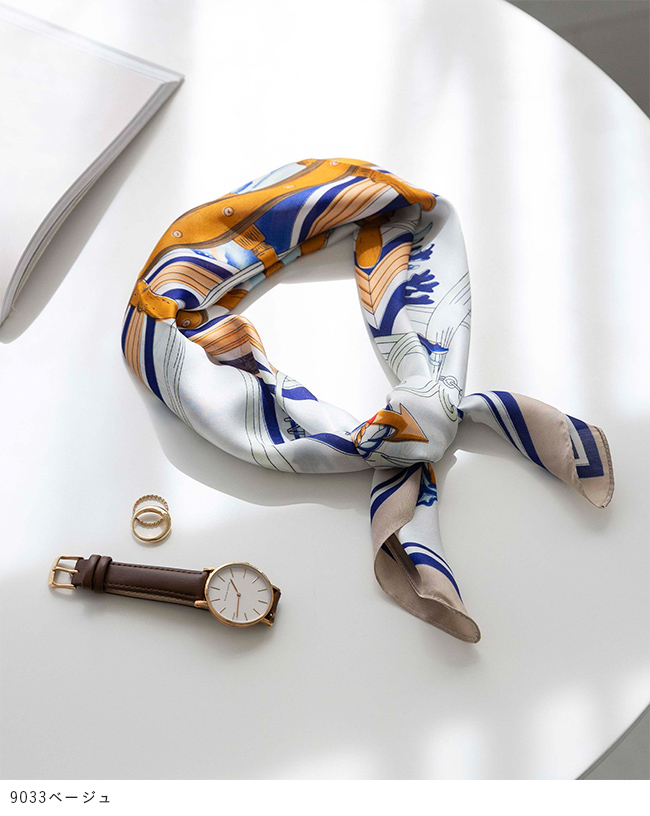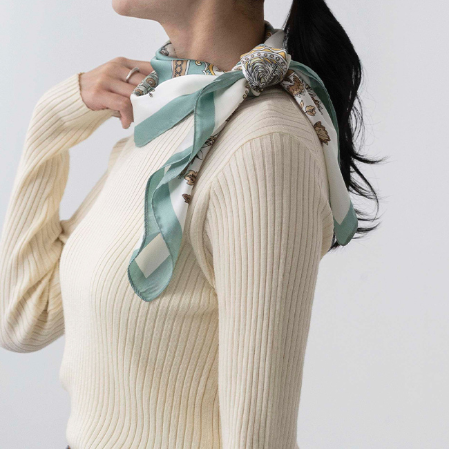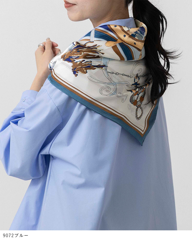 襟元にコンパクトに結んで顔周りを華やかにしたり、バッグのハンドルに巻いてアクセントにしたりと使い道は無限大。