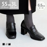 menue (メヌエ) スクエアトゥ 6.5cmヒール ローファー 送料無料