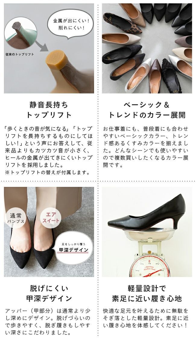 他の画像を見る カートに入れる お気に入りに登録する 感動の履き心地!ふわっふわビジネスパンプス2重クッションで衝撃吸収するから、ずっと立っていられる! menue femme (メヌエファム) ビジネスパンプス 送料無料 定価 ¥ 2,999 のところ 販売価格 ¥ 2,999 税込 4.20 (10件)
