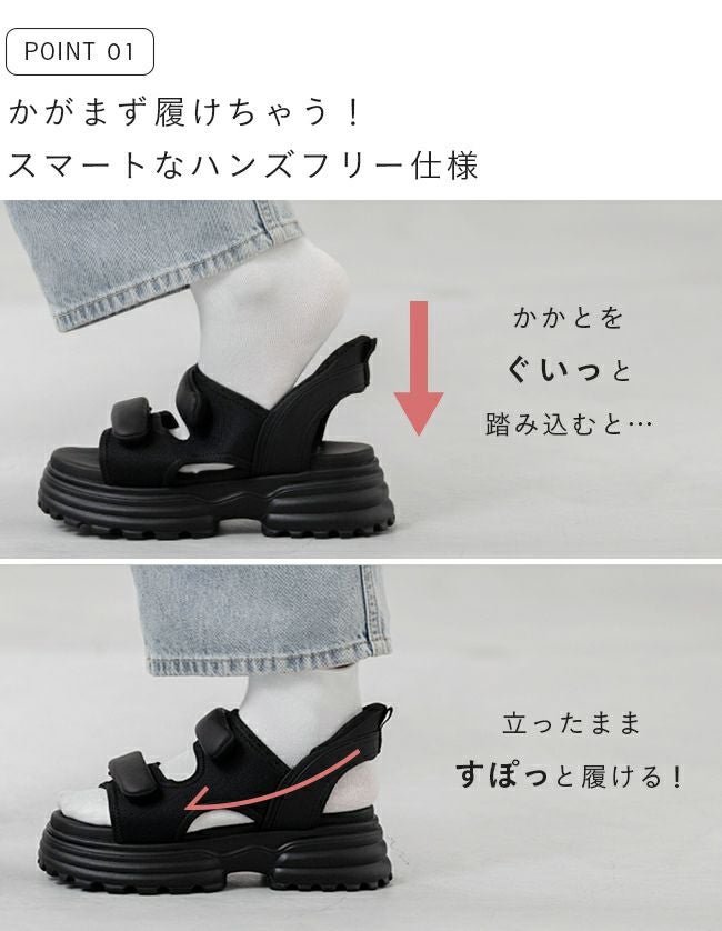 他の画像を見る カートに入れる お気に入りに登録する ぽってりストラップがアクセント!ハンズフリーで楽ちん厚底スポサン ハンズフリー 厚底 スポーツサンダル 送料無料 3月末日頃発送予定 NEW 新作300円クーポン対象 定価 ¥ 5,499 のところ 販売価格 ¥ 5,499 税込 (0件)