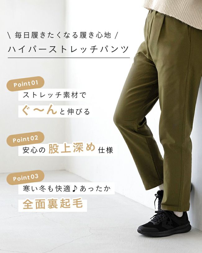 毎日履きたくなる履き心地 あったか 裏起毛 ハイパーストレッチテーパードパンツ メール便送料0円