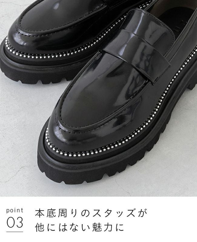 他の画像を見る カートに入れる お気に入りに登録する 本底周りのスタッズでいつもの厚底ローファーに差をつけて menue (メヌエ) スタッズ トラックソール 厚底ローファー 送料無料 定価 ¥ 5,499 のところ 販売価格 ¥ 5,499 税込 (0件)