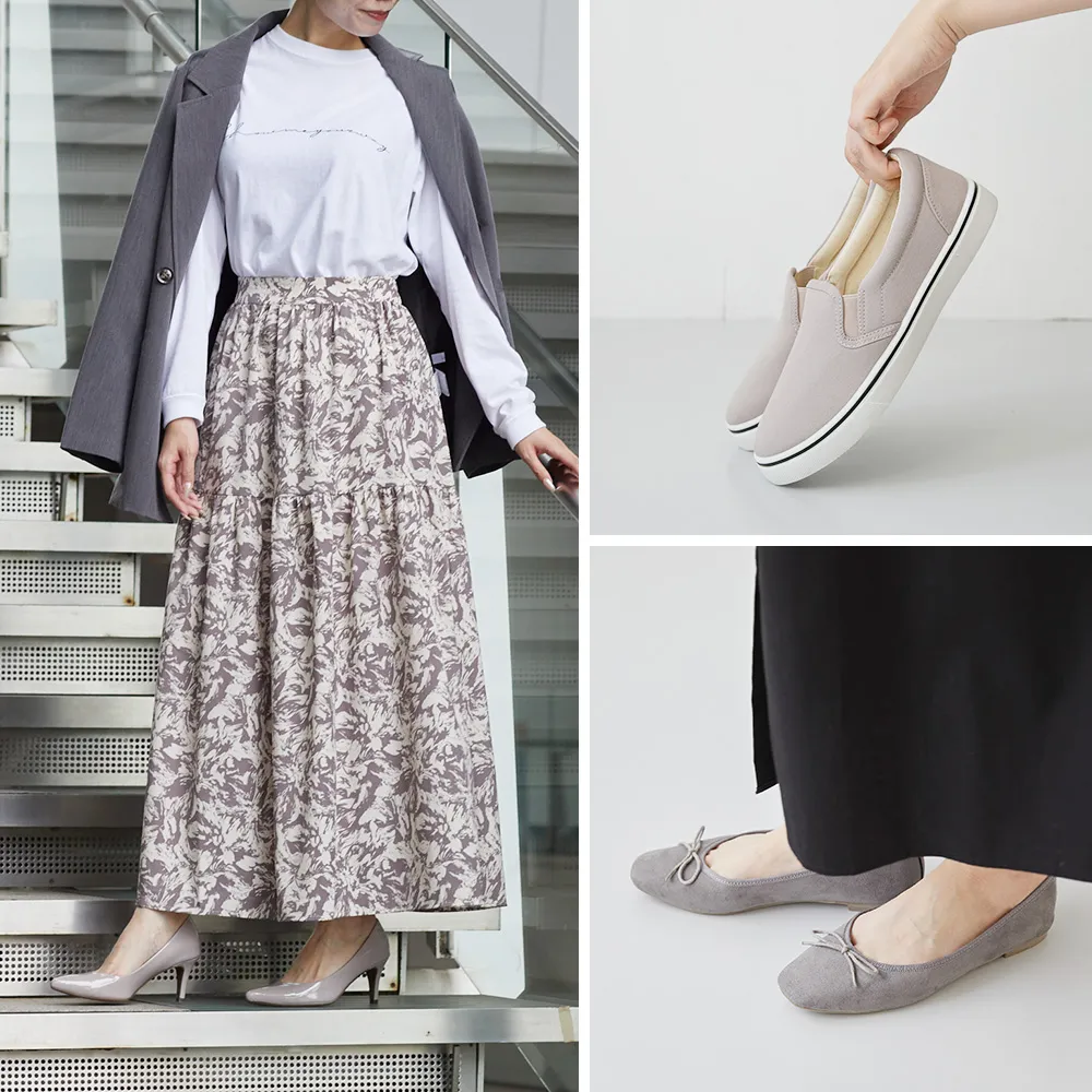 シューズで取り入れるなら、足元が重たくなりすぎないライトグレーもおすすめです!