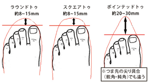 つま先に隙間がないと足指が圧迫されてしまい、親指が変形して「く」の字に曲がる”外反母趾”、 足指が屈曲する”ハンマートゥ”などの足の不調が出てくる可能性もあります。
